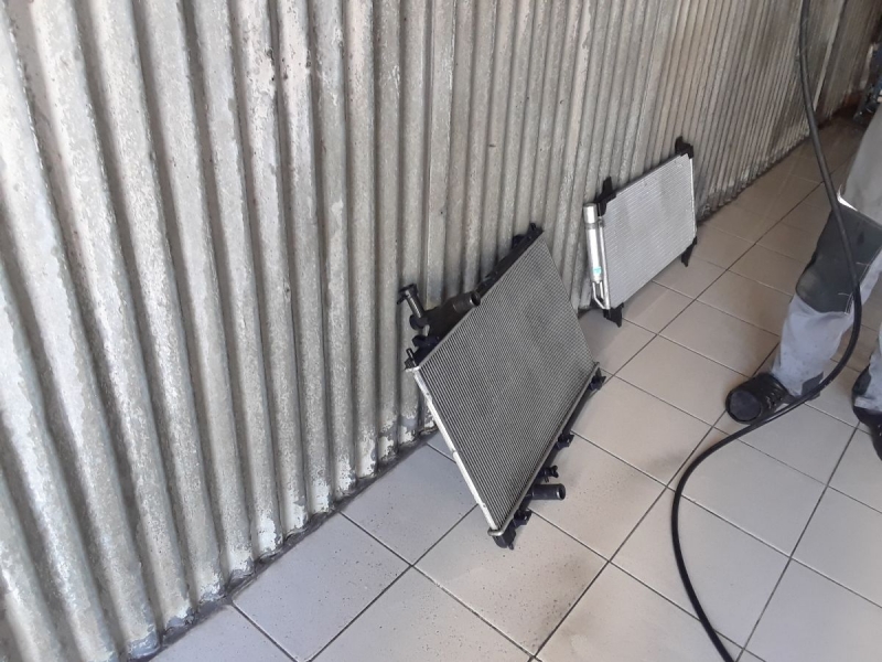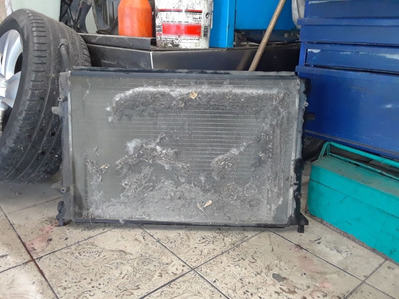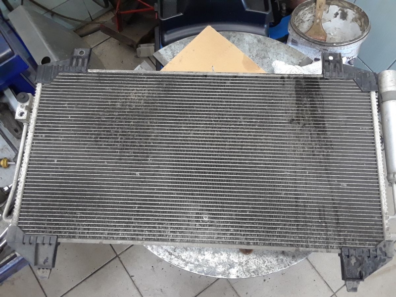 Под капотом автомобиля, вместе с основным радиатором охлаждения двигателя расположен радиатор автокондиционера. Как правило, он находится перед основным. Со временем поверхность радиатора сильно загрязняется и он перестает нормально охлаждать фреон. Особенно часто грязь и мусор забиваются между двумя радиаторами, откуда их особенно трудно удалить. Если не помогает продувка и мойка водой под высоким давлением снаружи, приходится демонтировать оба радиатора с автомобиля и тщательно отмывать и очищать от грязи. Только после этого восстанавливается эффективная работа автокондиционера.